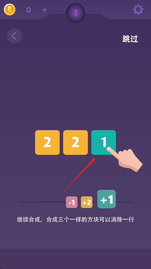 3、繼續(xù)合成操作,達成三個相同方塊組合,消除一行方塊獲取分數(shù)。