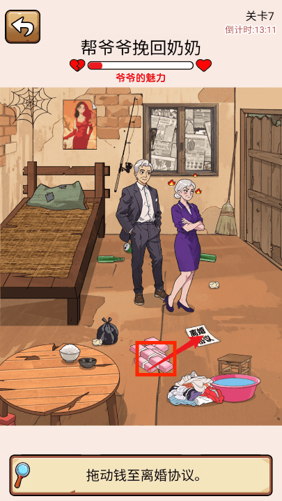 3、隱藏道具為把錢(qián)拖到離婚協(xié)議上,變成結(jié)婚證。