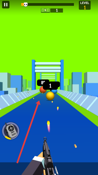 1、瞄準(zhǔn)射擊操作:在奔跑過程中瞄準(zhǔn)障礙物,可以通過手指敏捷操作控制火槍射擊,精準(zhǔn)擊碎阻擋物以順利前進(jìn)。