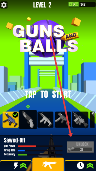 3、完成關(guān)卡或擊敗敵人獲取資金后,點(diǎn)擊主界面商城圖標(biāo),使用積攢的資金購買威力更強(qiáng)新槍械。