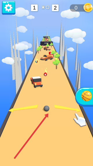 2、障礙規(guī)避技巧:遇到尖刺、炸彈時提前調整方向,利用道具效果或賽道地形迂回躲避,保證小球安全前行。