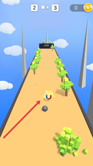 3、留意場景中的磁鐵道具,操控小球靠近拾取后,可短暫提升清潔范圍或吸附力,高效完成清潔任務。