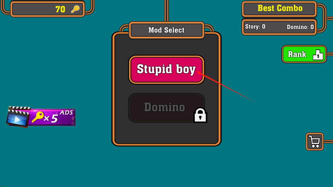 1、進(jìn)入游戲,在ModSelect界面,點(diǎn)擊愚蠢的男孩選項(xiàng),開啟游戲關(guān)卡。
