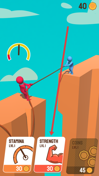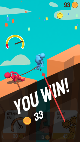3、通過高頻點擊積累拉拽優(yōu)勢,將對手逐步拖向懸崖邊緣,成功推落即獲得勝利。