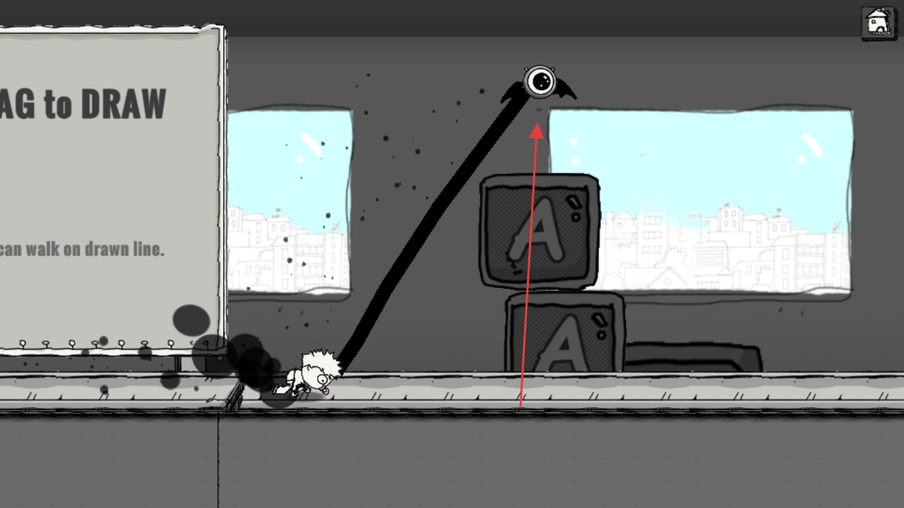 2、游戲通過方式,用手指在屏幕上繪制線條,繪制的線條可作為游戲角色行走的路徑,幫助角色躲避障礙、跨越溝壑等。