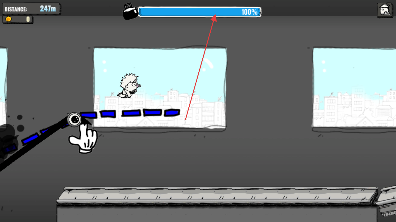 3、界面上方會顯示相關(guān)信息,記錄角色行進距離,進度條顯示任務(wù)完成進度等,玩家需合理規(guī)劃繪圖,讓角色在有限資源下盡可能前進更遠距離,完成關(guān)卡目標(biāo)。
