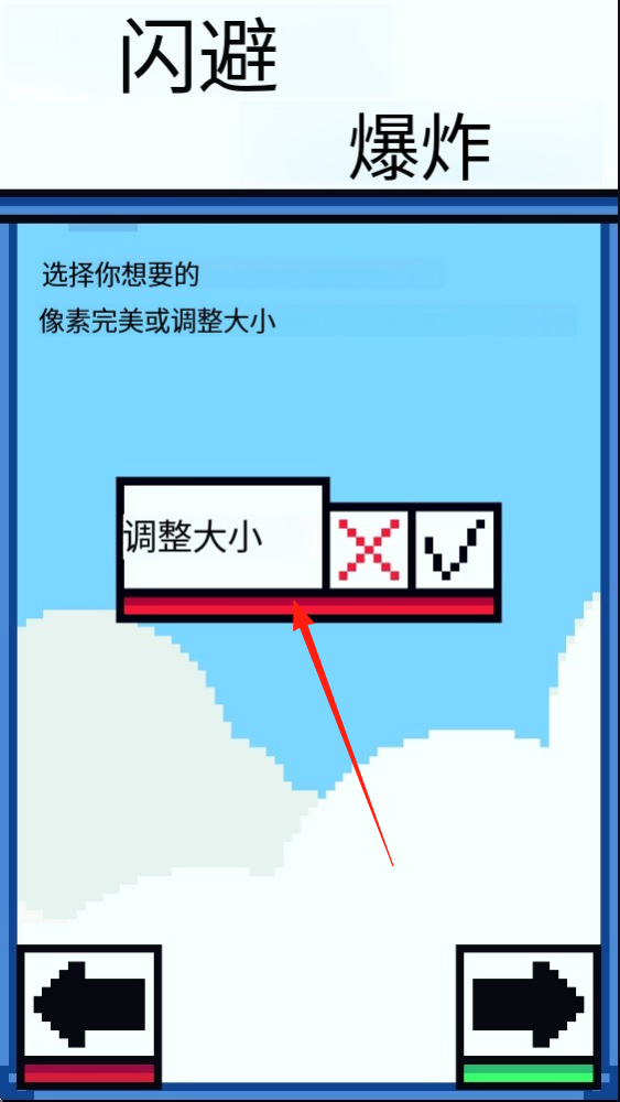 2、進入設置界面,根據(jù)需求選擇調(diào)整大小選項,并通過叉號或?qū)创_認設置。