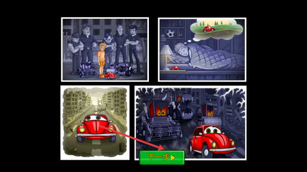 1、在游戲劇情選擇界面,點(diǎn)擊帶有紅色小車的圖片,再點(diǎn)擊【下一步】按鈕,進(jìn)入游戲地圖界面。