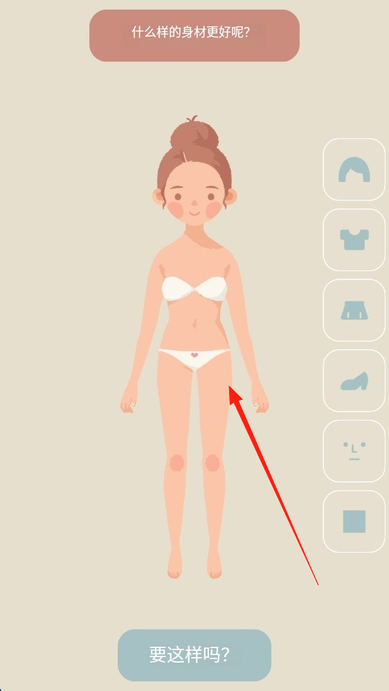 1、在角色身材選擇界面,根據(jù)對(duì)“什么樣的身材更好”的理解,可通過右側(cè)圖標(biāo)為角色搭配裝扮。