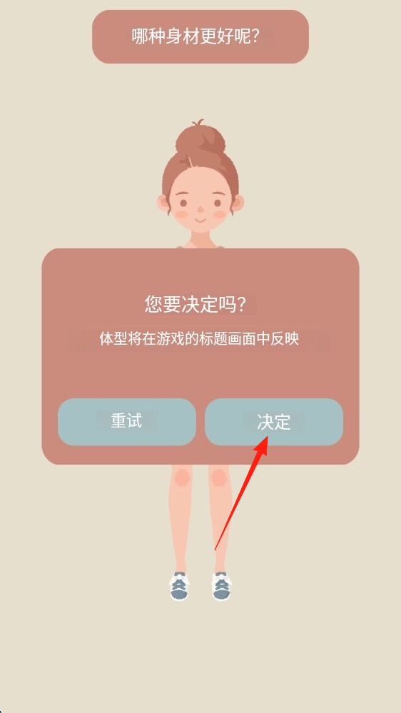 2、確認(rèn)角色身材及裝扮后,點(diǎn)擊“決定”按鈕,確定所選體型,其將在游戲標(biāo)題畫面呈現(xiàn)。
