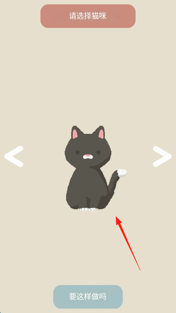 3、在貓咪選擇界面,依據(jù)喜好選擇貓咪,如點(diǎn)擊當(dāng)前展示的黑貓,再根據(jù)提示操作推進(jìn)游戲。