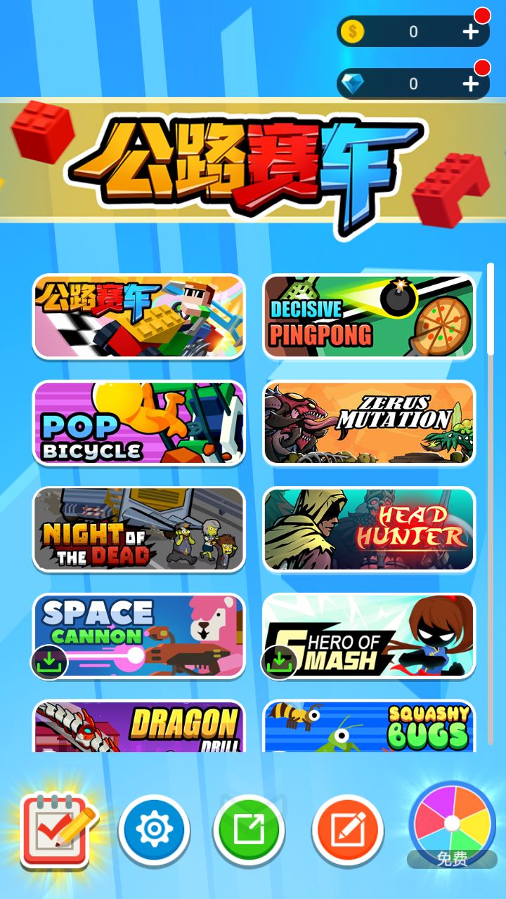 1、在游戲主界面,選擇【公路賽車】游戲模塊,點擊進入游戲,可留意界面上方的金幣和鉆石數(shù)量。