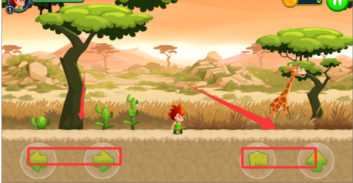 1、游戲開始先熟悉基礎(chǔ)操作,左側(cè)虛擬搖桿控制移動,右側(cè)按鍵進(jìn)行射擊和跳躍。
