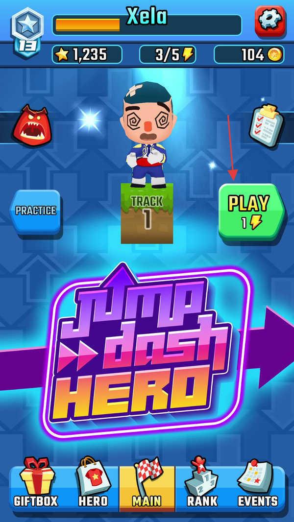 1、在游戲主界面,點擊綠色【PLAY】按鈕,消耗1點體力開啟【TRACK 1】關(guān)卡,投身跑酷冒險,體驗游戲初始樂趣。