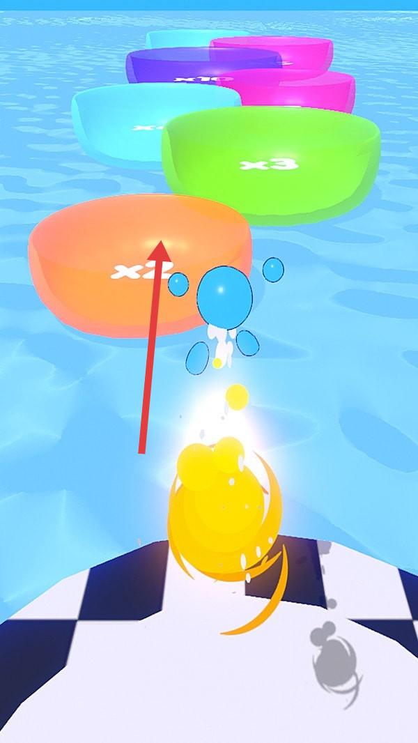 1、在游戲過程里,操控藍(lán)色角色前進(jìn),先跳到標(biāo)有“x2”等倍數(shù)的平臺(tái),增加得分倍數(shù)。