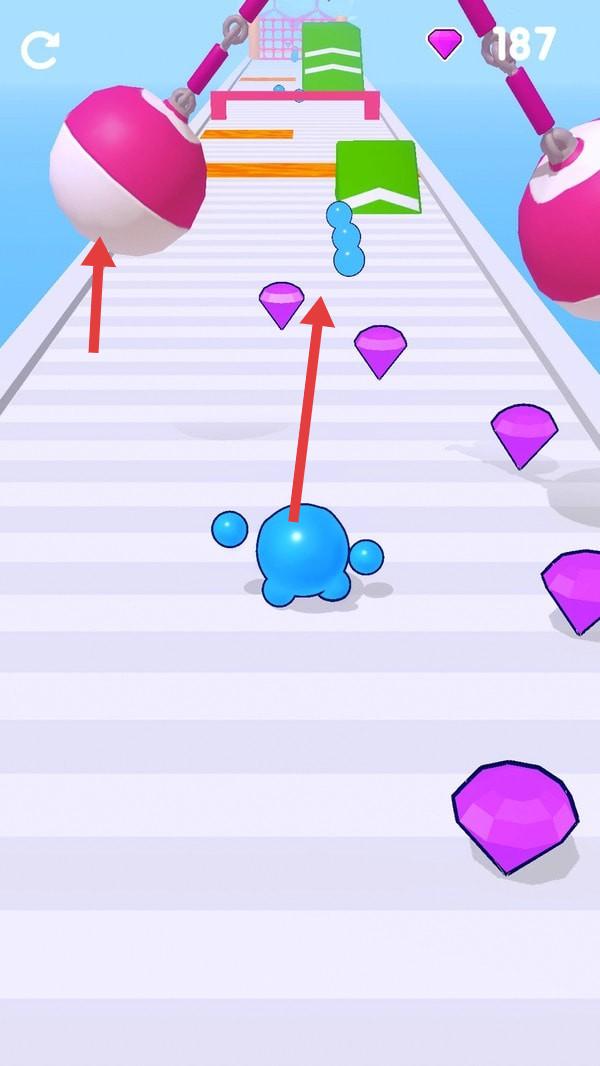 3、同時(shí),收集道路上的【紫色鉆石】,提升分?jǐn)?shù),朝著終點(diǎn)方向行進(jìn)。