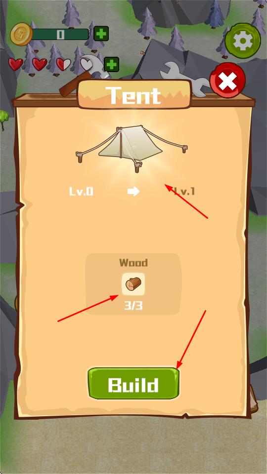 3、消耗收集的資源,在對(duì)應(yīng)界面進(jìn)行建筑建造與升級(jí),解鎖新功能、提升屬性,助力冒險(xiǎn)。