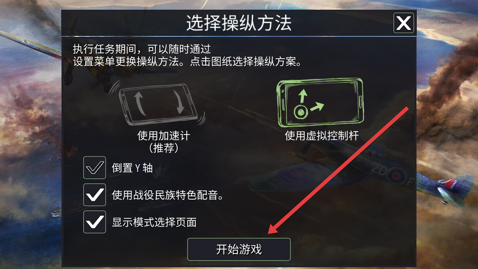 2、選擇操縱方法,完成護(hù)航轟炸任務(wù)時(shí),記得先打掉追在轟炸機(jī)屁股后面的蒼蠅。