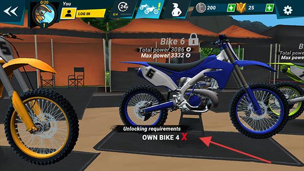1、車輛界面查看“Bike6”解鎖條件(需擁有Bike4),先通過賽事/獎勵獲取Bike4。