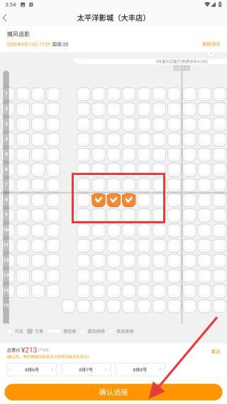 4、點(diǎn)擊后,需要再次明確需要坐的位置,再點(diǎn)擊確認(rèn)選座即可完成。