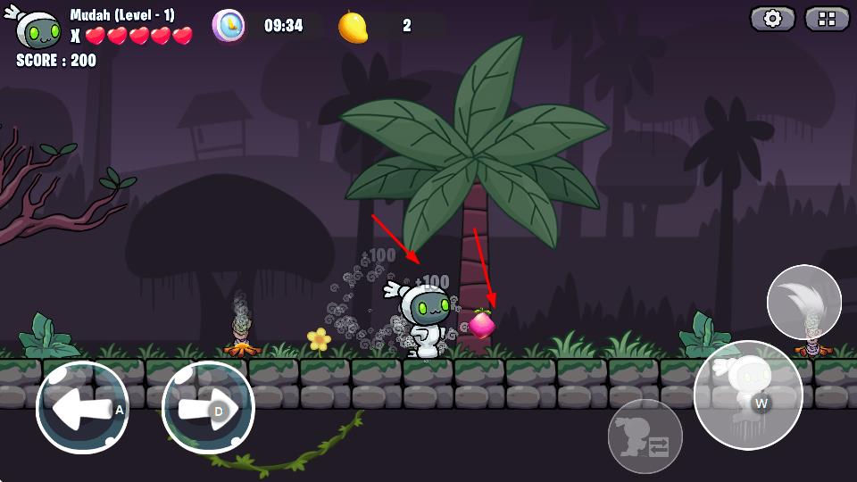 2、沿途拾取水果、芒果等道具,水果可能回復(fù)生命、芒果可作貨幣,收集資源提升生存與養(yǎng)成能力。