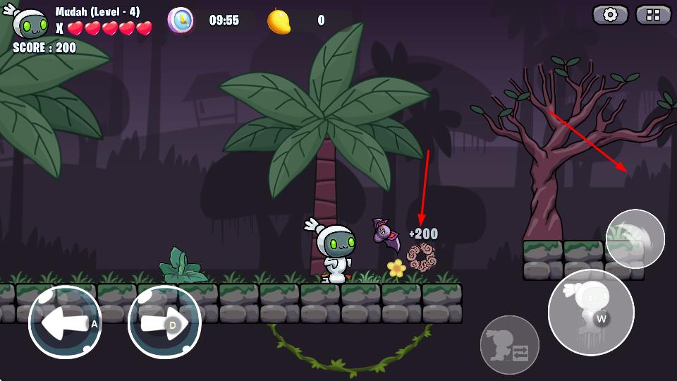 1、基礎(chǔ)移動與跳躍:通過虛擬按鍵控制波聰左右移動,點(diǎn)擊跳躍按鈕進(jìn)行跳躍,長按跳躍按鈕可觸發(fā)波聰?shù)挠撵`漂浮能力,短暫滯空以跨越更遠(yuǎn)距離或避開陷阱。