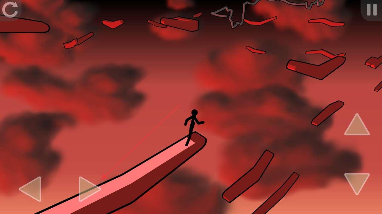 1、進(jìn)入游戲場景后,點擊方向按鍵操控火柴人移動,踏上跑酷之旅,開啟趣味挑戰(zhàn)。