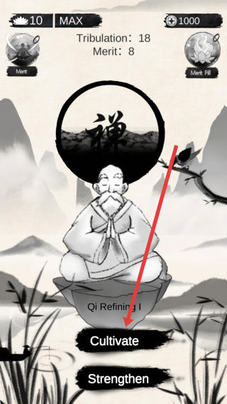 3、屬性升級(jí)策略:消耗通關(guān)獲得的“禪心值”升級(jí)經(jīng)文射速或靜心持續(xù)時(shí)間,平衡短期生存與長期修行效率。