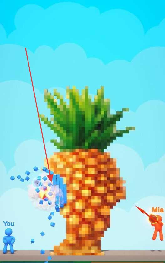 3、挑戰(zhàn)菠蘿關(guān)卡時(shí),把握【You】與【Mia】的攻擊順序,針對(duì)菠蘿凹凸紋理,優(yōu)先攻擊綠色頂部與橙色主體銜接位、表面凹陷處。