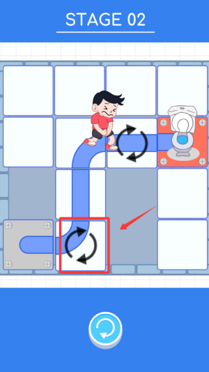 1、進入游戲后,點擊連接方塊幫助小男孩上廁所。