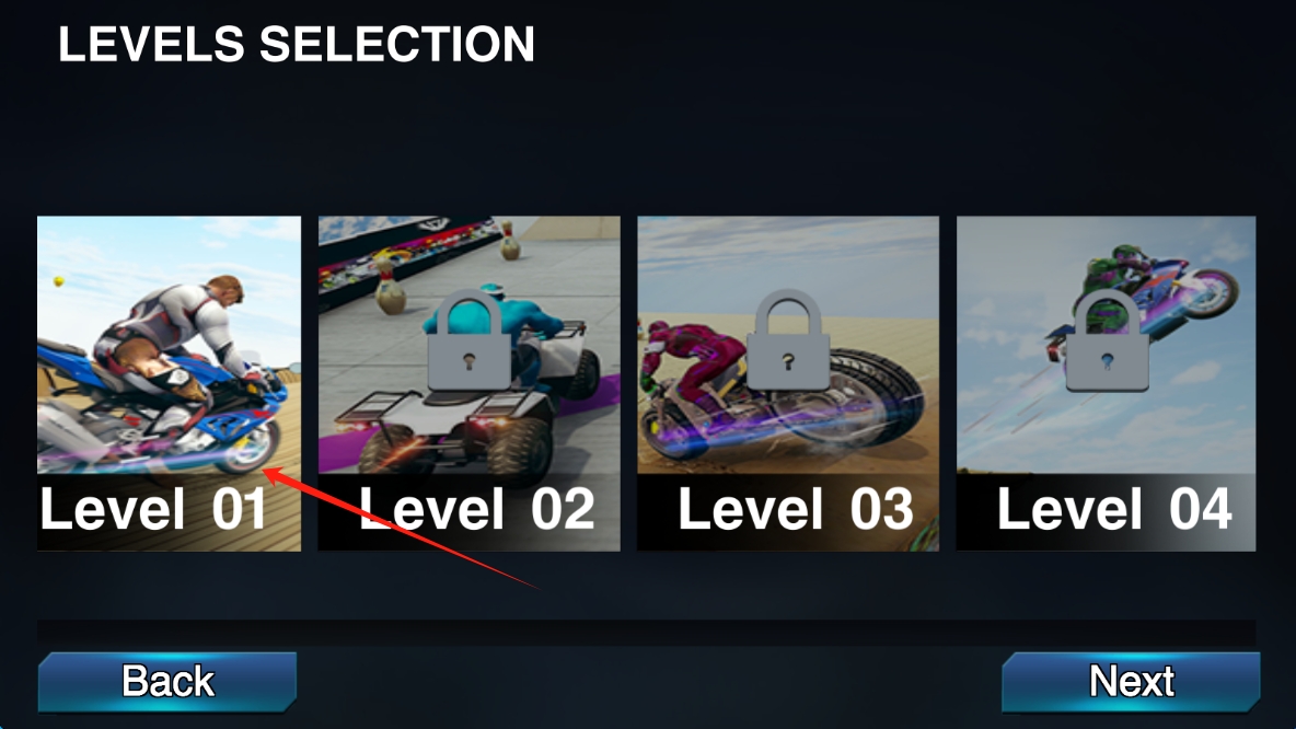 2、選擇關(guān)卡,注意收集限時(shí)零件,可能用于合成稀有摩托車,利用每日登錄獎(jiǎng)勵(lì)獲取免費(fèi)升級(jí)與加速解鎖。