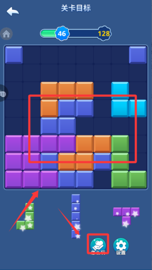 2、特殊方塊機(jī)制增加策略深度。每隔若干關(guān)卡會(huì)引入新方塊類型,如不可旋轉(zhuǎn)的固定方塊或需特殊消除的障礙方塊。