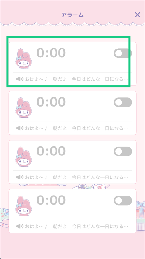 3、返回選擇兔子標(biāo)識(shí)則來(lái)到鬧鐘界面,玩家可以設(shè)定鬧鐘讓美樂(lè)蒂叫醒。