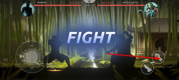 1、打開游戲等待加載完成,通過背景對話了解劇情后進(jìn)入新手教程,跟隨提示熟悉左邊輪盤移動、右邊拳腳攻擊的基礎(chǔ)操作。