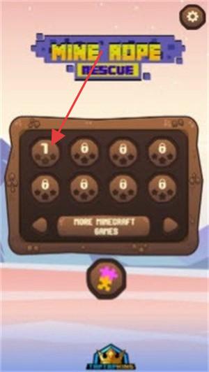 2、在關卡選擇界面,選定關卡(如數(shù)字“1”),進入場景,觀察懸掛角色與繩索布局。