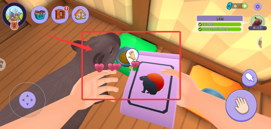 3、回到動物旁邊,點擊食物可以進行投喂,完成系統(tǒng)任務。