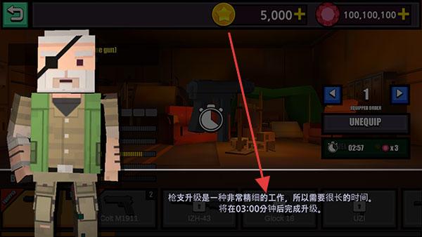 3、升級提示,武器升級需時間,顯示“03:00分鐘后完成”,等待或用加速道具,完成后獲更強(qiáng)武器。