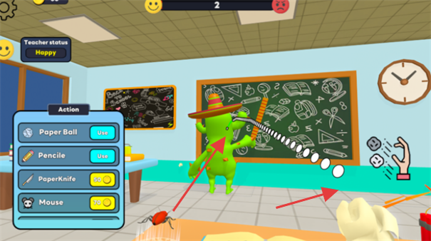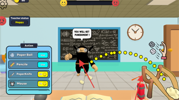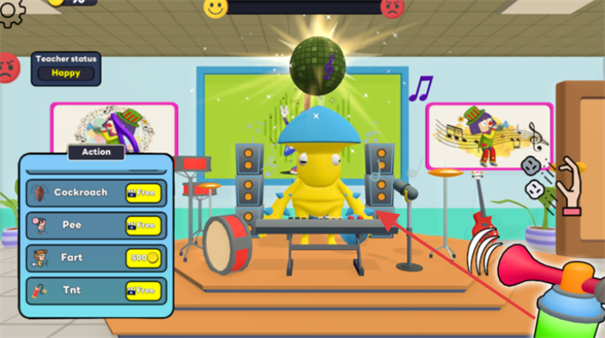 2、豐富道具系統(tǒng):包含30余種整蠱道具如爆炸粉筆灰滑倒香蕉皮等,每種道具觸發(fā)不同惡作劇效果,增加整蠱策略性。