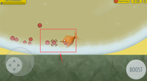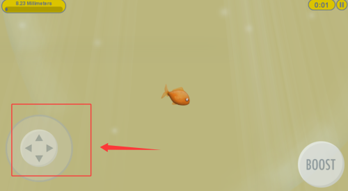 2、通過屏幕左側(cè)虛擬搖桿操控魚類游動(dòng)方向,右側(cè)功能鍵可觸發(fā)加速?zèng)_刺等特殊動(dòng)作。