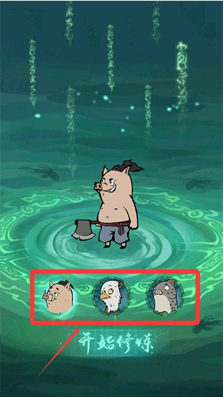 2、游戲現(xiàn)有豬妖、鳥妖、魚妖三種角色可以選擇,選擇豬妖開始修煉。