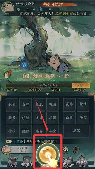 1、點擊屏幕砍伐靈木,不僅能掉落各種裝備與資源,還可能觸發(fā)奇遇與挑戰(zhàn),構(gòu)建出輕松有趣的升級路徑。