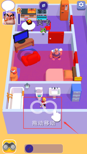 3、拖動(dòng)角色至衛(wèi)生間,完成關(guān)卡移動(dòng)任務(wù)。