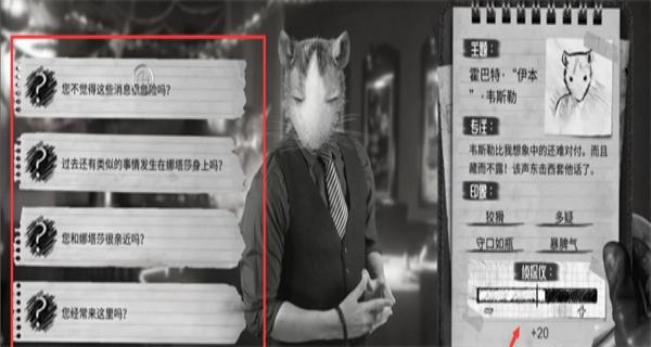 3、也可以用盤問,強硬的獲得我們想要的信息,點擊盤問之后,可以問各種問題,然后根據(jù)偵探儀判斷對方有沒有說謊。
