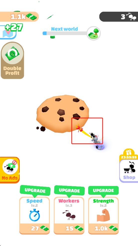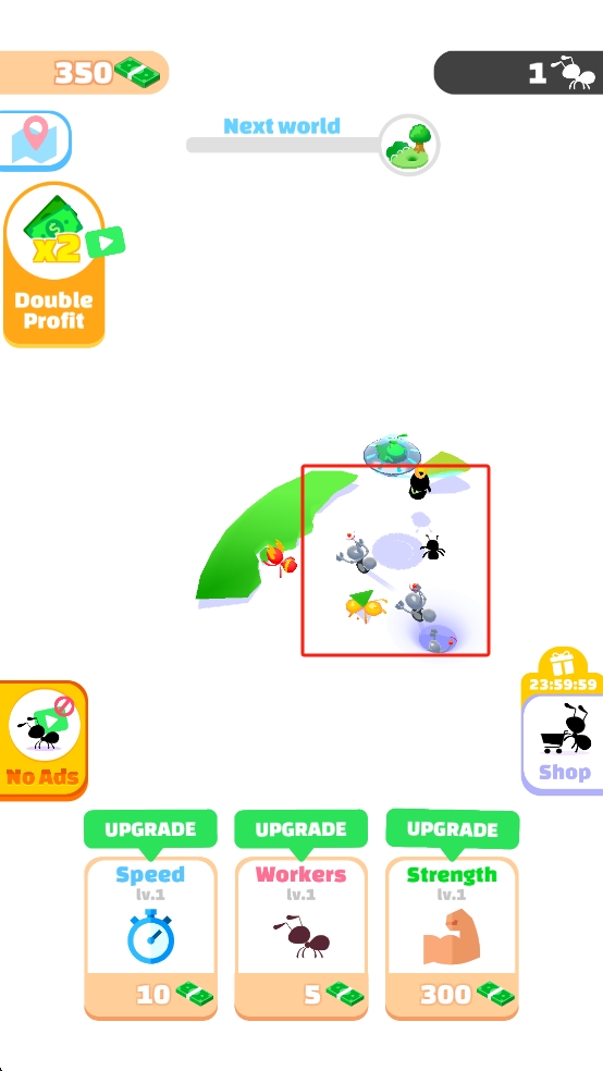 1、規(guī)劃蟻群發(fā)展:分配工蟻負(fù)責(zé)食物采集、蟻巢修繕,派遣兵蟻進(jìn)行巡邏與戰(zhàn)斗,通過(guò)放置機(jī)制讓蟻群自動(dòng)完成基礎(chǔ)工作,玩家則專注于升級(jí)螞蟻種類、優(yōu)化資源分配。