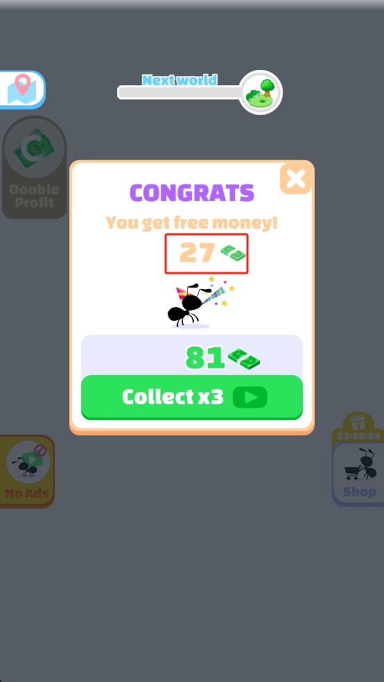 1、下載安裝完成之后進(jìn)入游戲,這里我們需要點(diǎn)擊屏幕下方的按鈕派遣螞蟻,然后即可開始游玩。