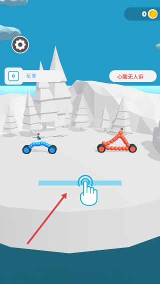 3、在對戰(zhàn)界面,點(diǎn)擊藍(lán)色橫線區(qū)域,操控載具前進(jìn),與對手比拼,爭取獲勝。