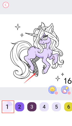 3、選擇數(shù)字1顏色,填充獨(dú)角獸紫色區(qū)域。