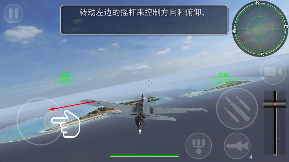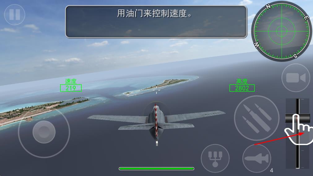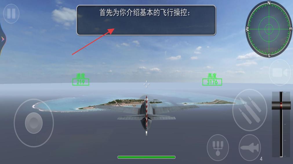 1、進入游戲后,選擇初始飛機型號,在跑道界面熟悉操作桿、油門等控件,完成首次起飛操作,升入指定空域。