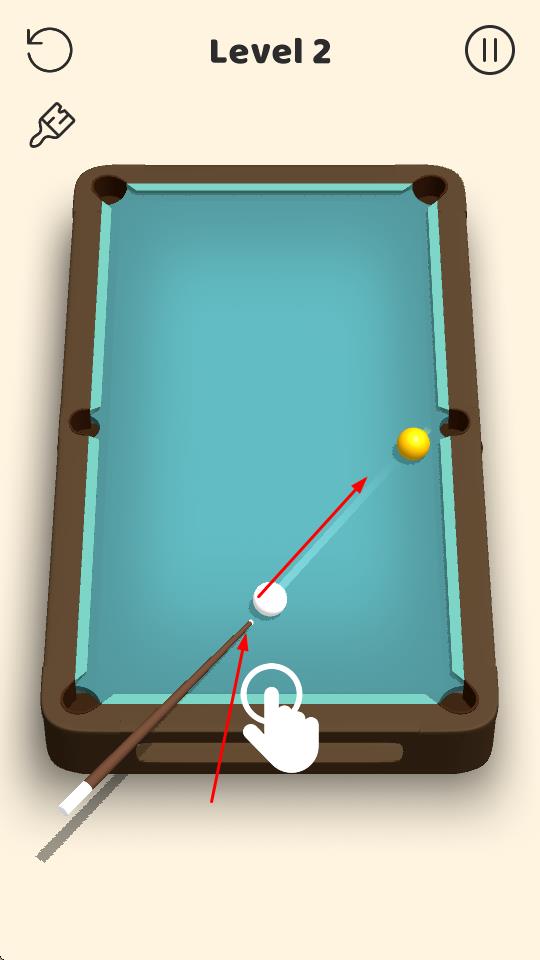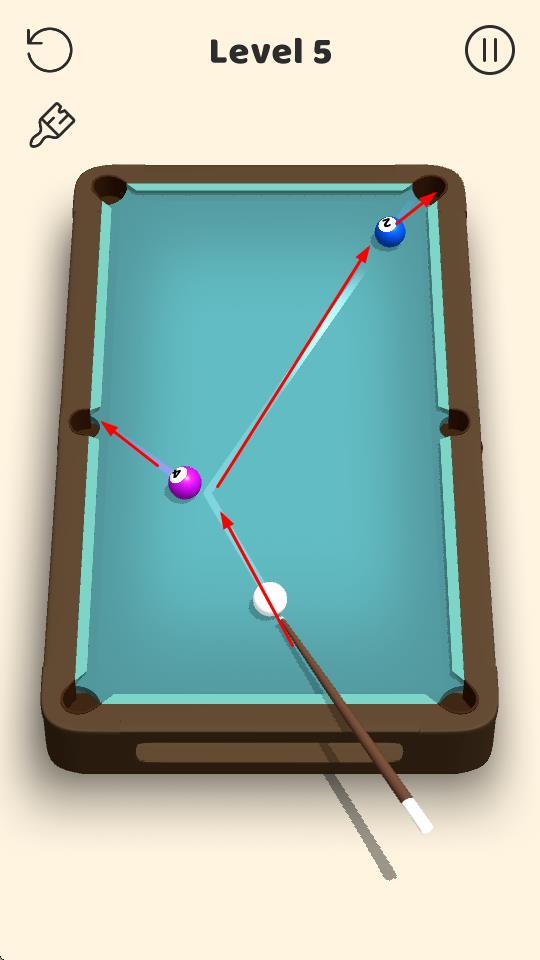 3、隨著關(guān)卡推進,臺球桌上的目標球數(shù)量和位置會變得更加復(fù)雜,需更精準地計算擊打角度和力度,完成關(guān)卡任務(wù),成功將目標球擊打入袋。