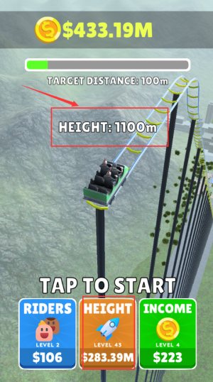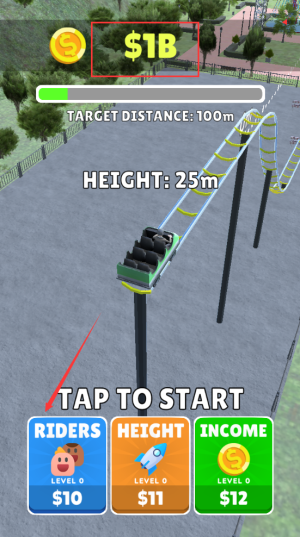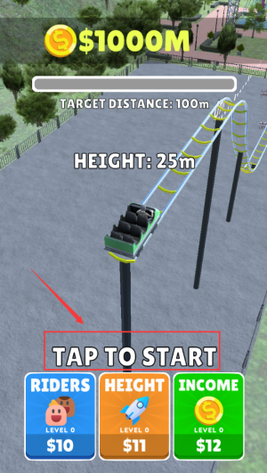 1、點(diǎn)擊紅框TAP TO START,開始過山車經(jīng)營游戲。